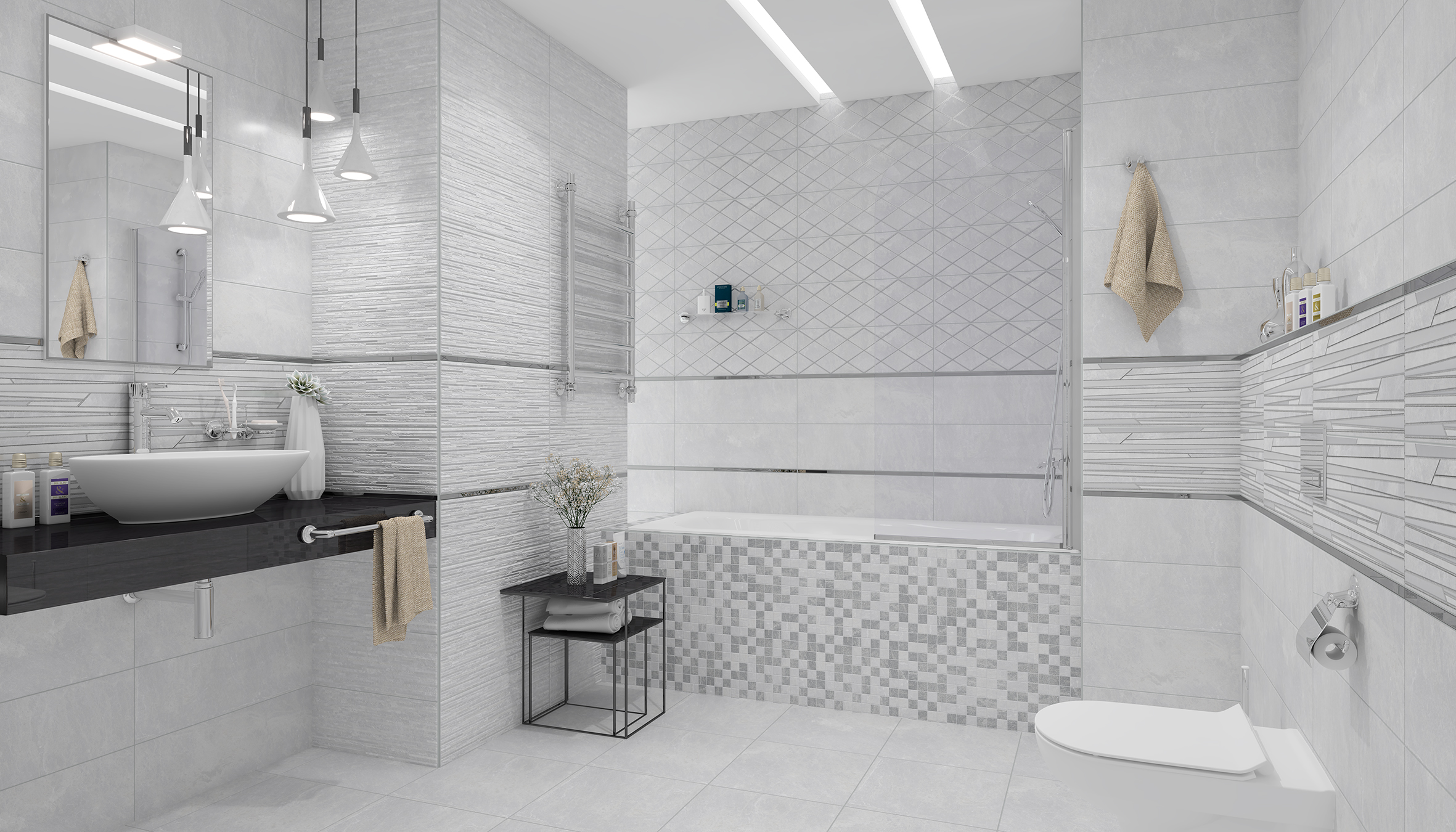 Alcor Плитка настенная серый мозаика 17-11-06-1188 20х60