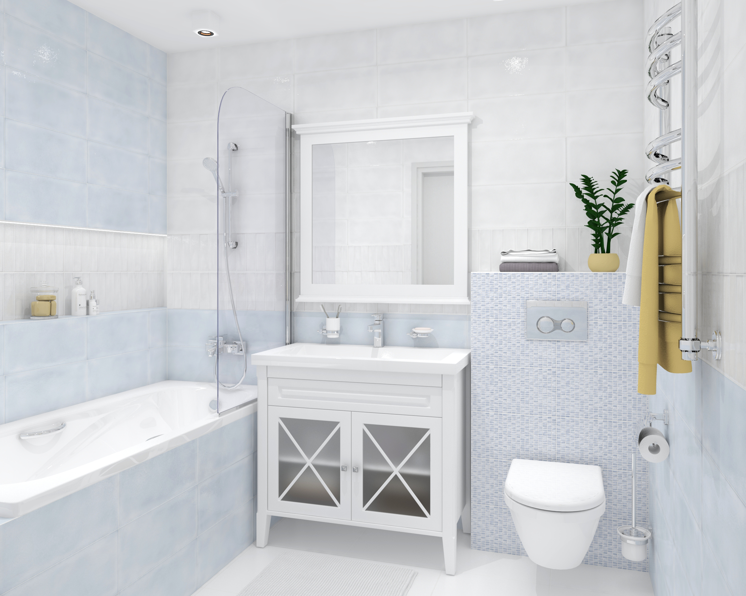 Пудра облицовочная плитка мозаика рельеф голубой (PDG043D) 20x44