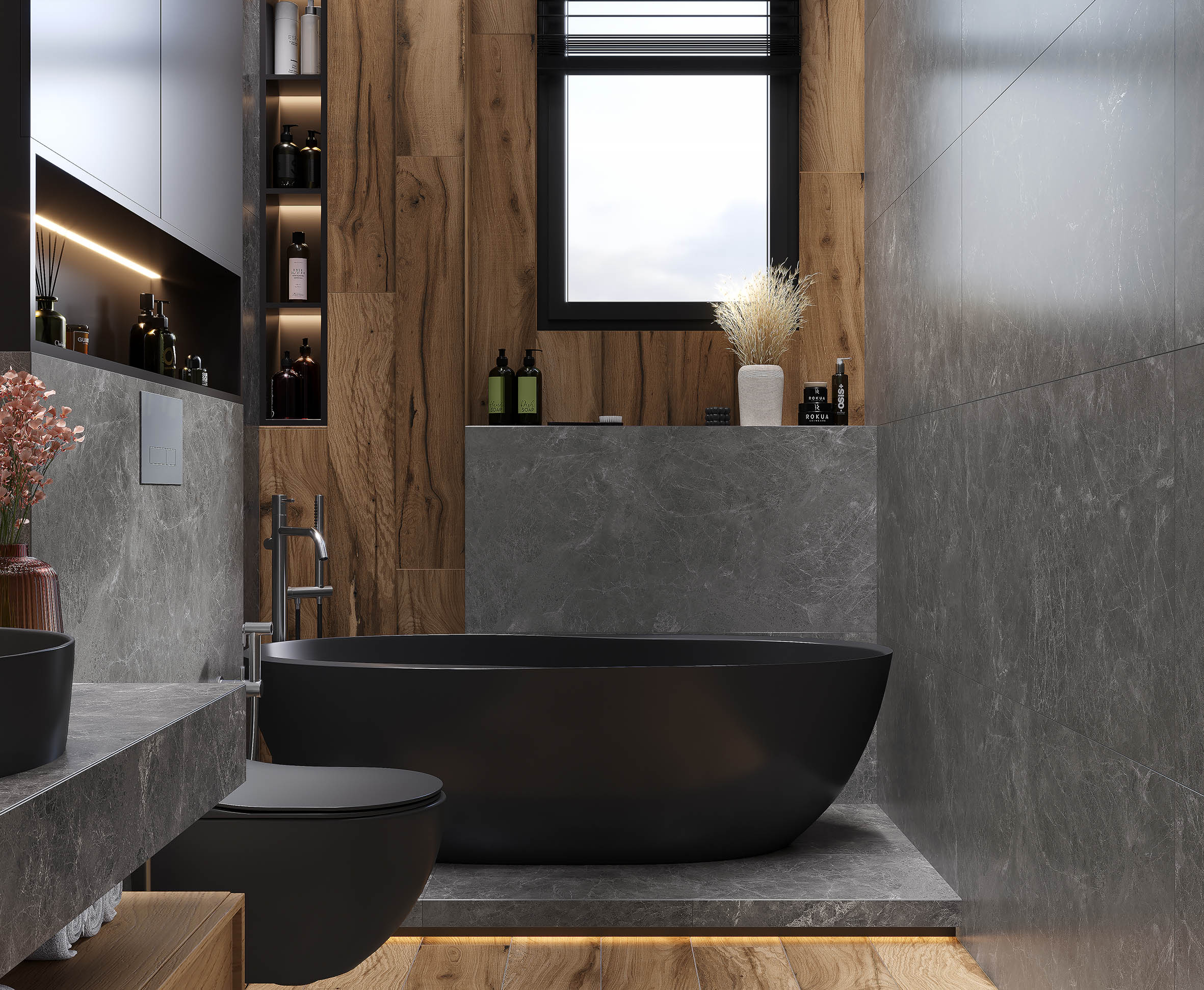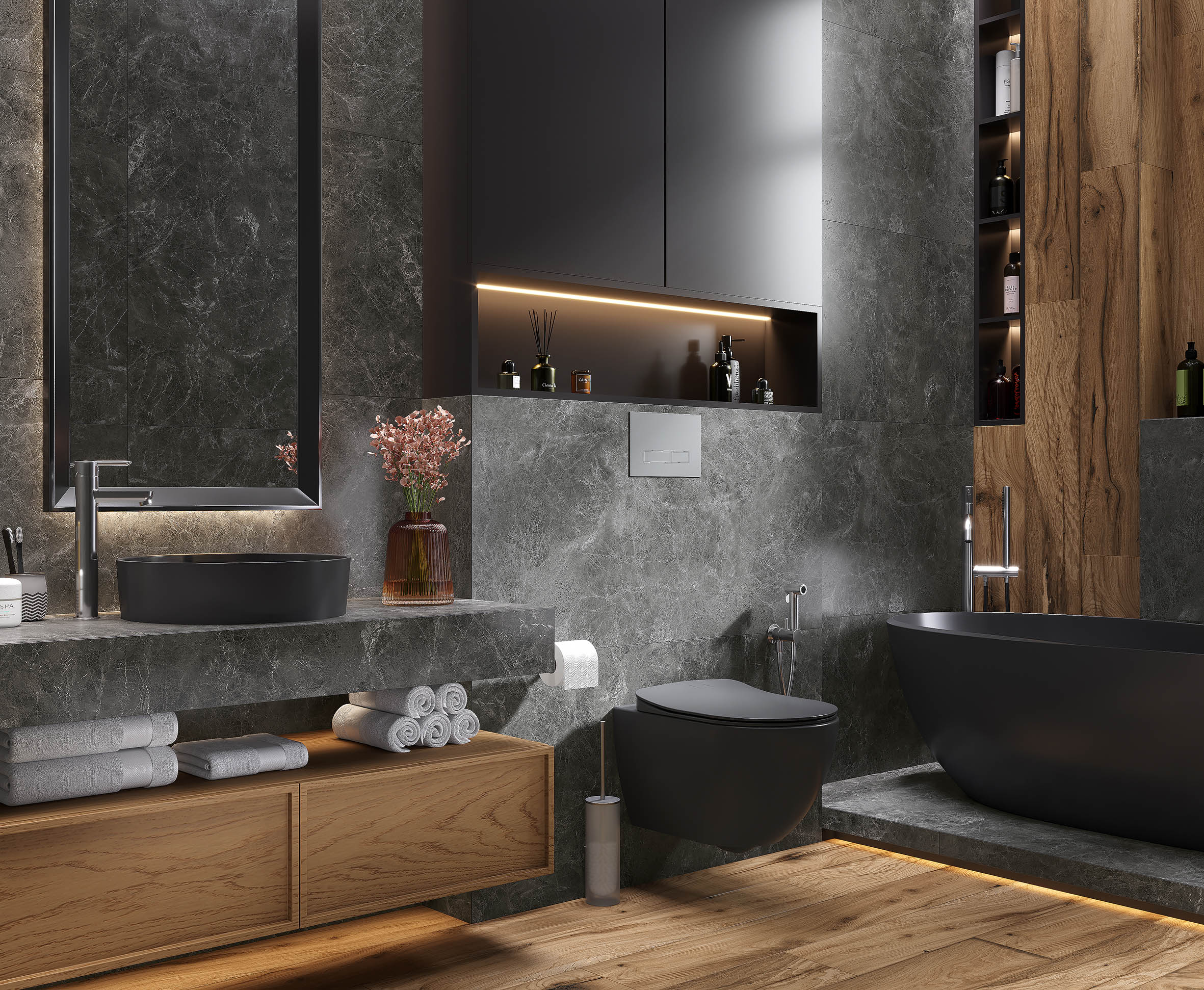 Руна Неро Керамогранит графитовый 60х120 матовый структурный